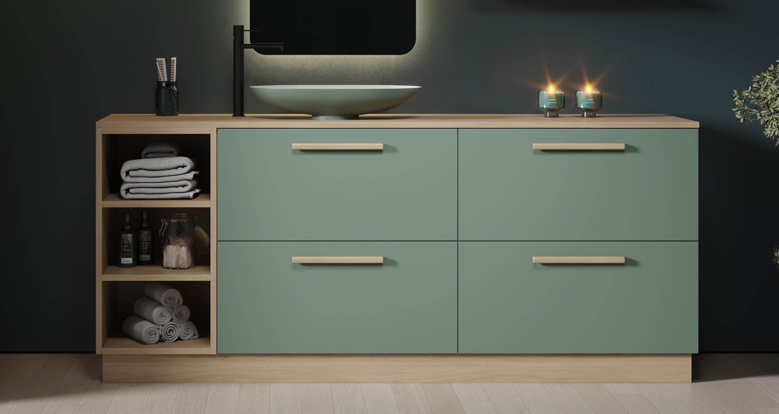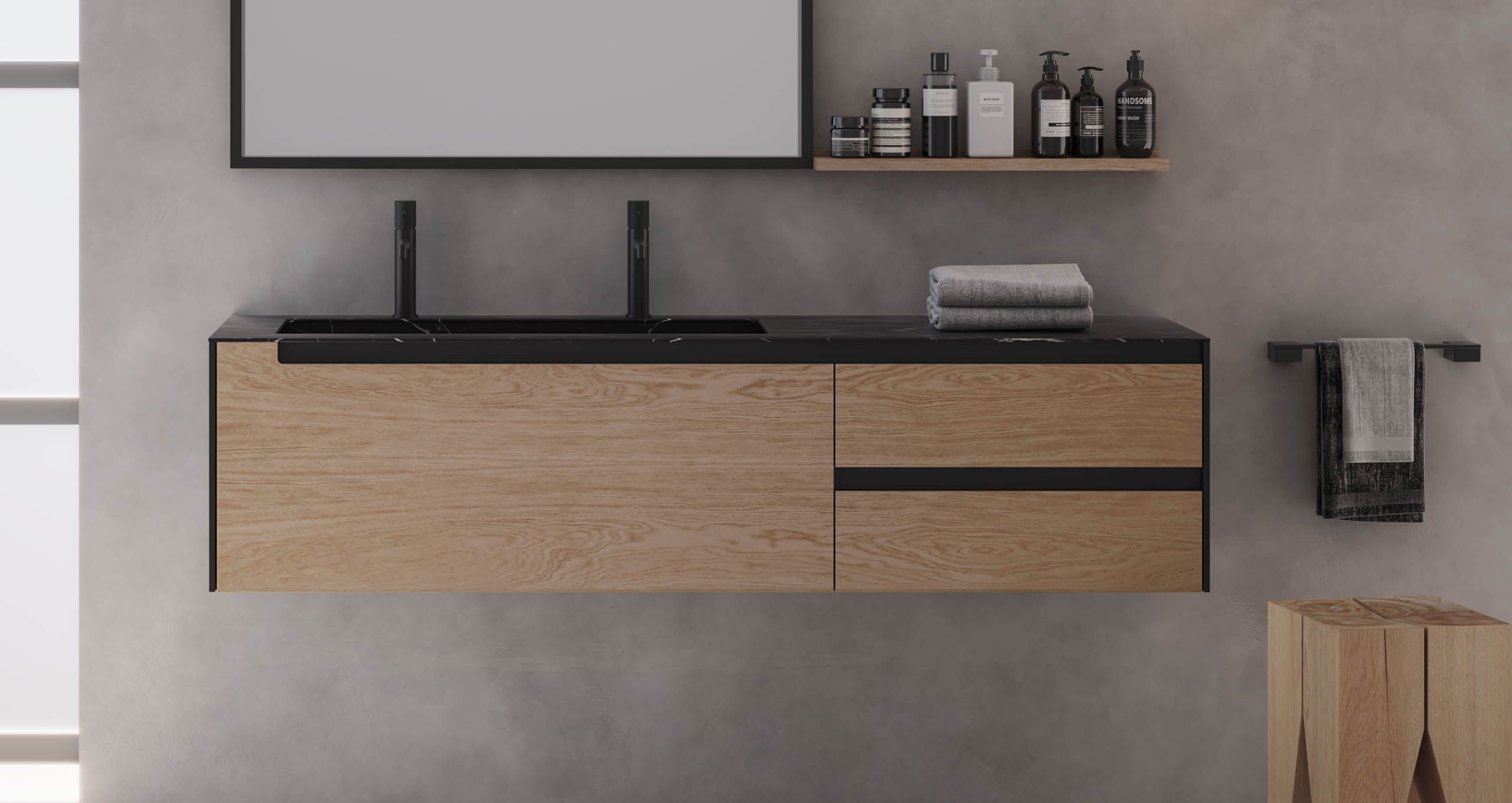 Con la Serie Custom podrá personalizar su mueble de baño eligiendo aspectos como tipo de cajones, encimeras, lavabos, patas o tiradores. Somos fabricantes y podemos hacer el mueble de baño que se ajuste a sus gustos o necesidades.