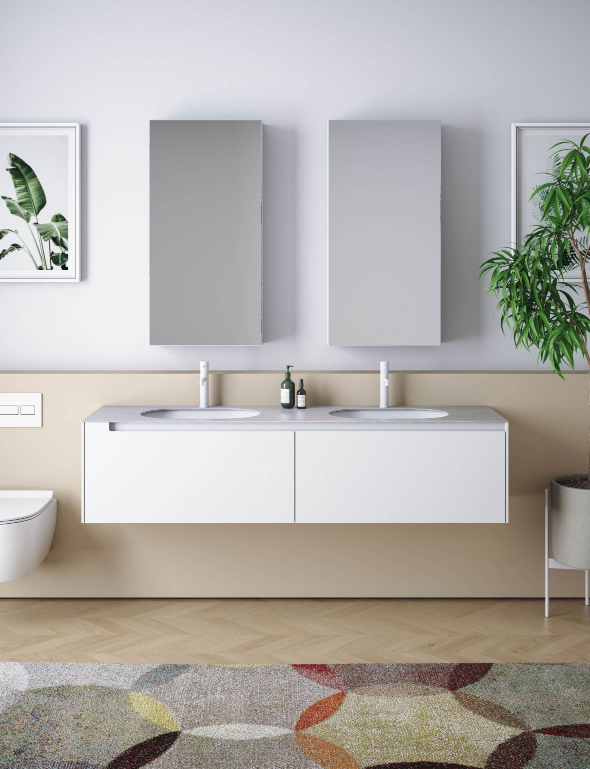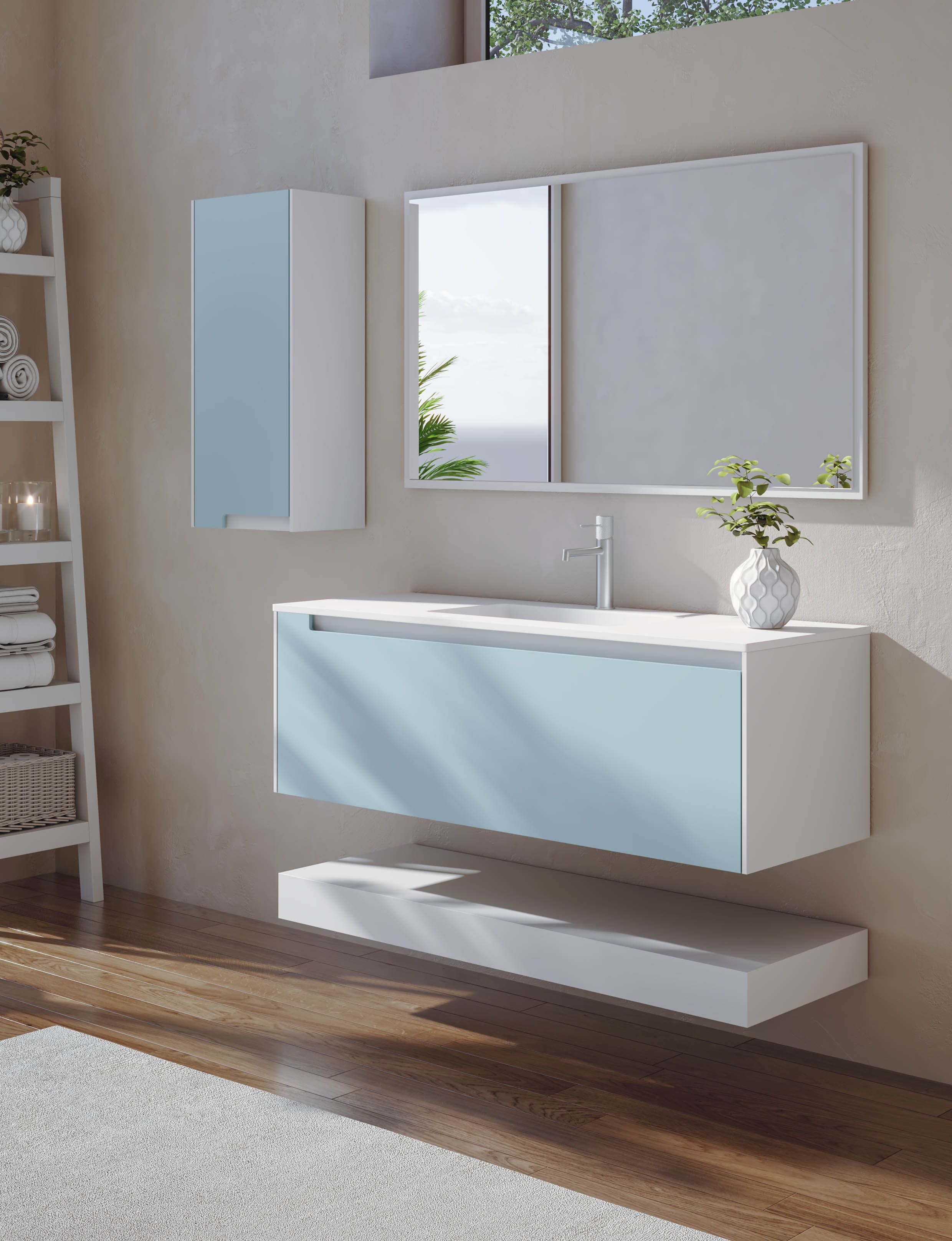 Con tonos lisos, tonalidades de madera o frentes de cajones estampados podrá elegir y configurar cualquier mueble de la serie NIZA