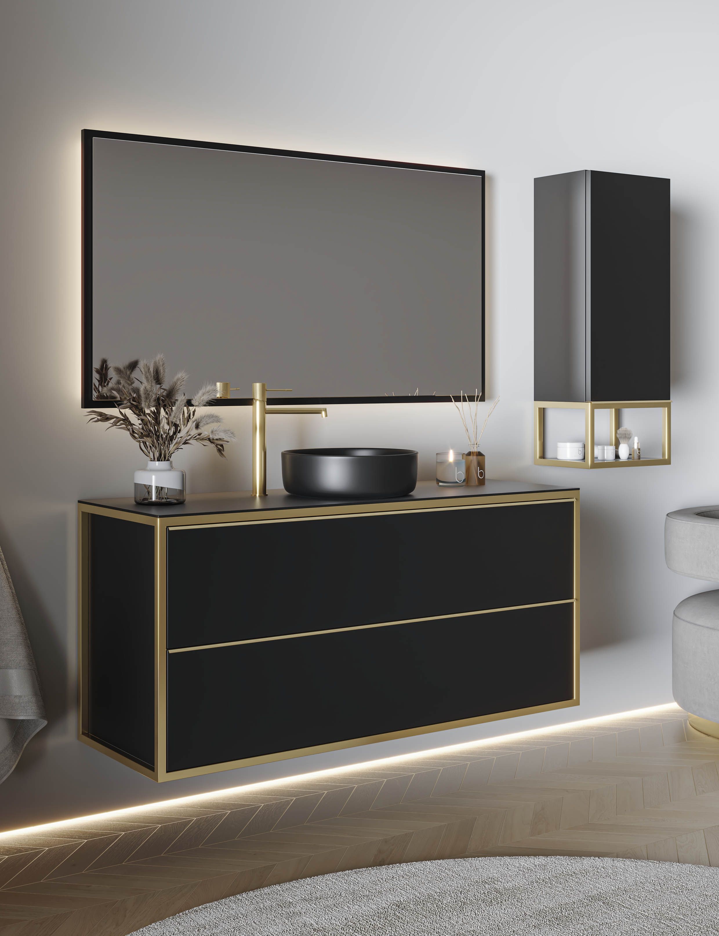 La estructura y el tirador metálico negro combinado con maderas o lacas, crean un ambiente de inspiración nórdica elegante y sofisticada.