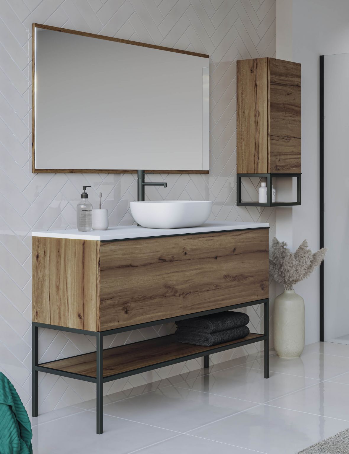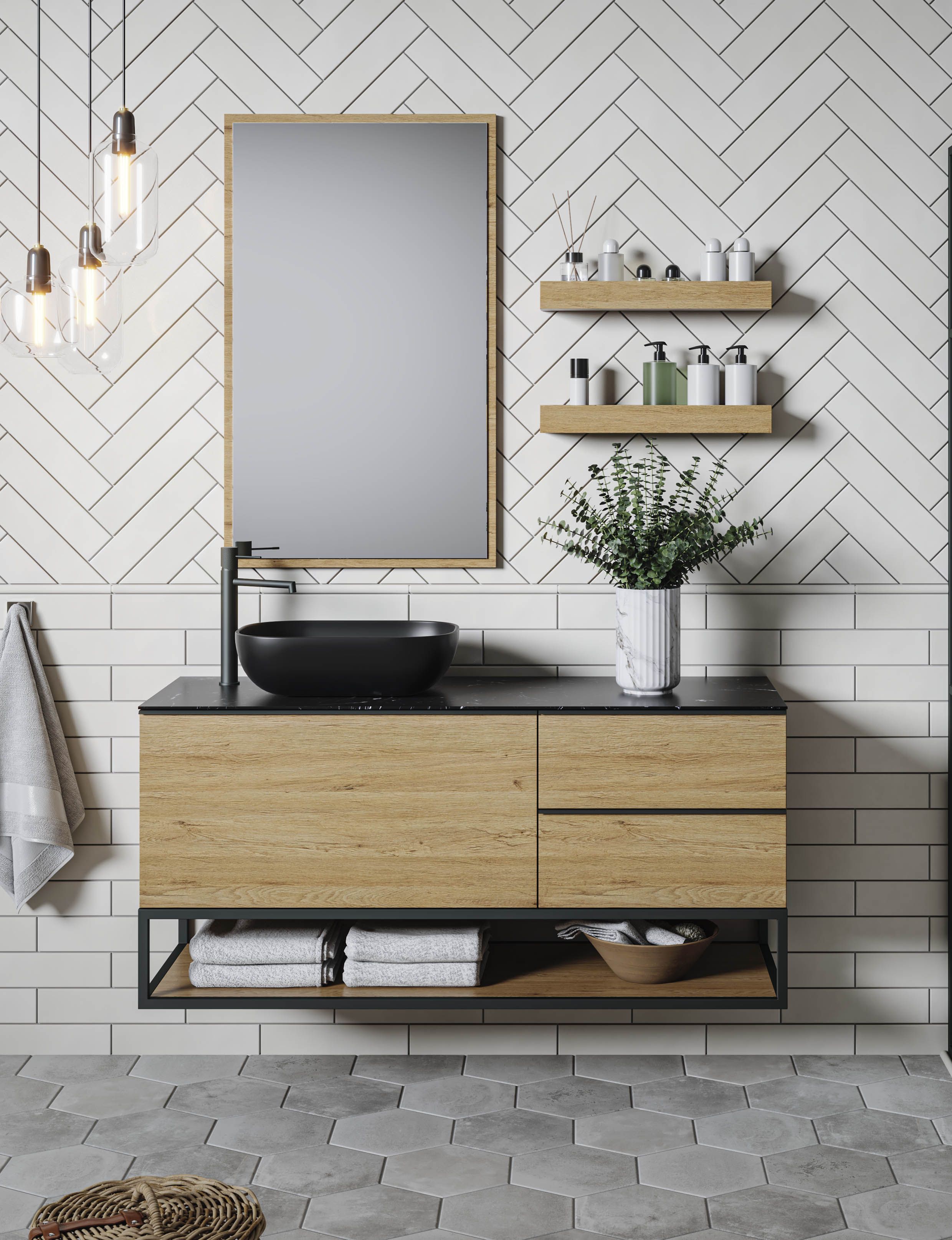 La estructura y el tirador metálico negro combinado con maderas o lacas, crean un ambiente de inspiración nórdica elegante y sofisticada.